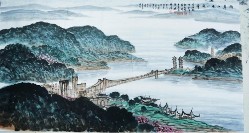 活动尾声,蒋鹏与周矩敏、牟克民、汤知辛、阮礼荣、许婕、陶涛等六位书画家联袂创作《山水一线牵》,将公益情怀融入笔墨,共谱文化公益交融新篇章。