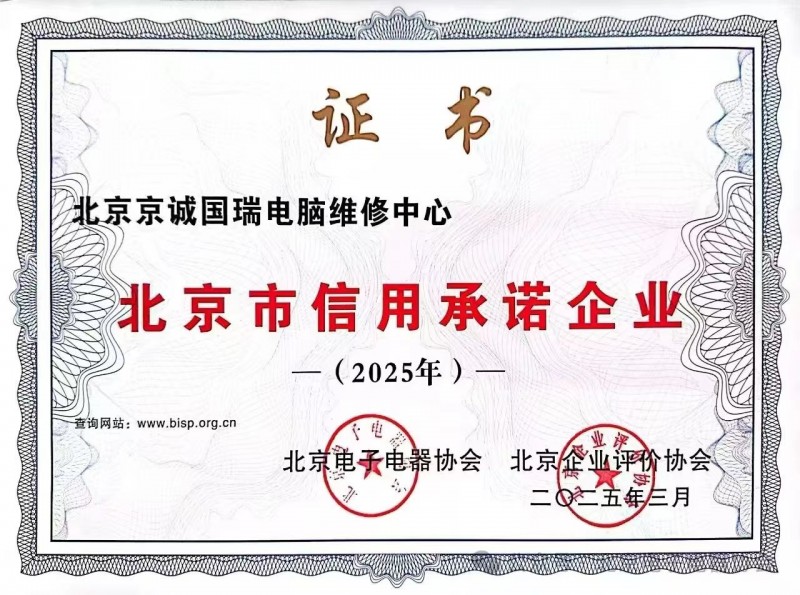 凭借多年的行业坚守,京诚国瑞电脑维修中心始终将诚信经营融入日常经营的方方面面,并荣获“北京市信用承诺企业”、“立信企业”、“诚信倡议企业”等荣誉称号。“诚信不是口号,而是脚踏实地的实际行动。”在中关村这片曾被乱象笼罩的电子商圈,冉铮的维修中心犹如一股清流,用诚信和专业赢得了市场的尊重。当同行还在为短期利益而不择手段时,他已目光长远,用二十年如一日的坚守,为行业树立起了诚信经营的典范,让“放心维修”理念深入人心。他的存在,不仅是对消费者权益的守护,更是对行业乱象的有力回击,为电脑维修行业的健康发展指明了方向。