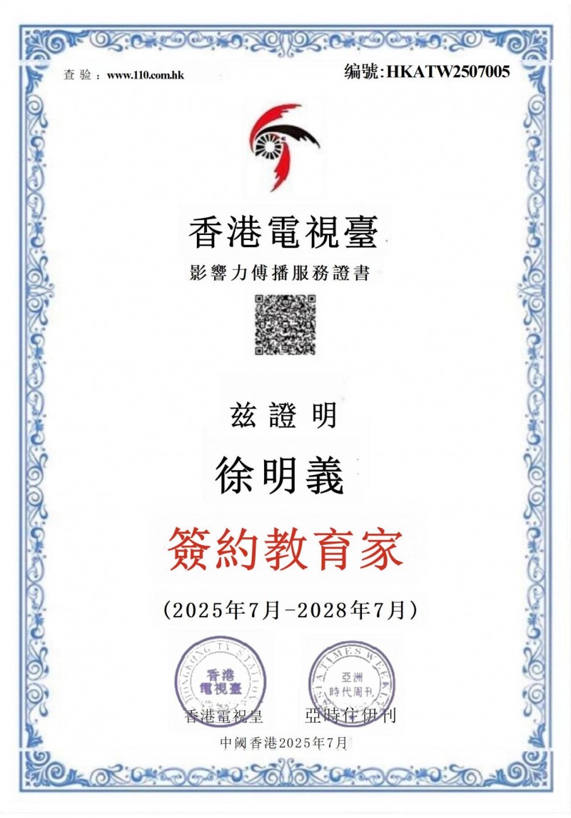 “数元教育”的创始人徐明义先生荣获香港电视台签约教育家