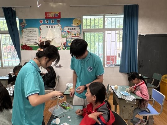 课堂开始,实践团成员化身“工科讲师”,借助生动PPT,从生活里的工科应用切入,为同学们讲解工科基础小知识 。从力学原理到简单机械的奇妙运作,把晦涩概念转化为趣味故事,点燃同学们对工科领域的好奇与向往,让科技启蒙的种子在乡村校园扎根。