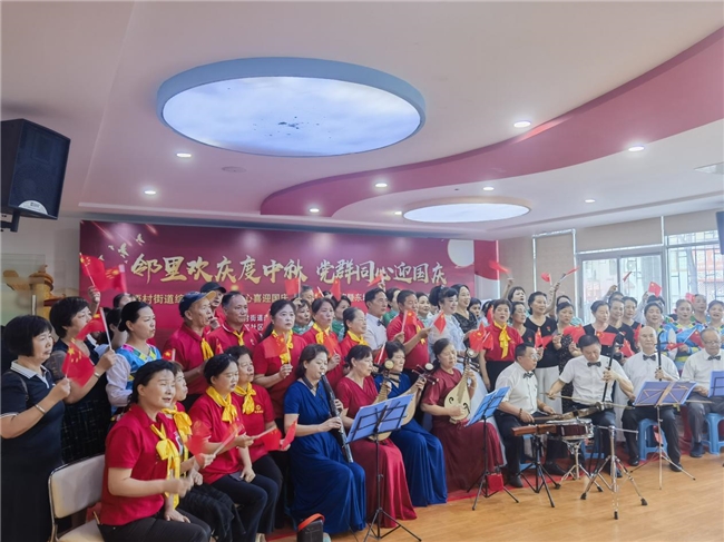 活动在激昂的《欢迎进行曲》中拉开帷幕。红色歌曲《闪闪的红星》《五星红旗》唤起观众的集体记忆,舞蹈《美丽中国》《生日欢歌》展现社区活力,旗袍秀《水韵江南》尽显优雅风韵。
