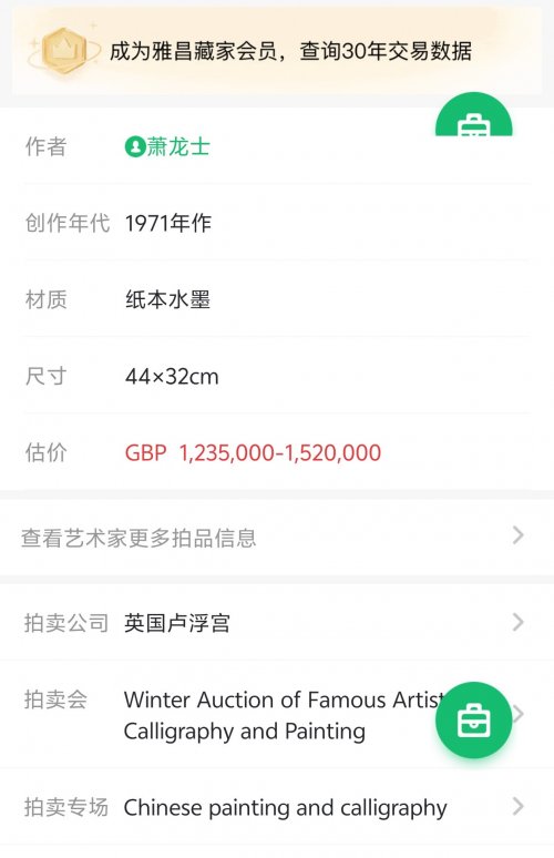 据悉,本次拍卖会预展及拍卖地点均位于英国伦敦Strand, Westminster Borough, WC2R OEU,萧龙士作品的高价位成交,为中外艺术交流写下了浓墨重彩的一笔。